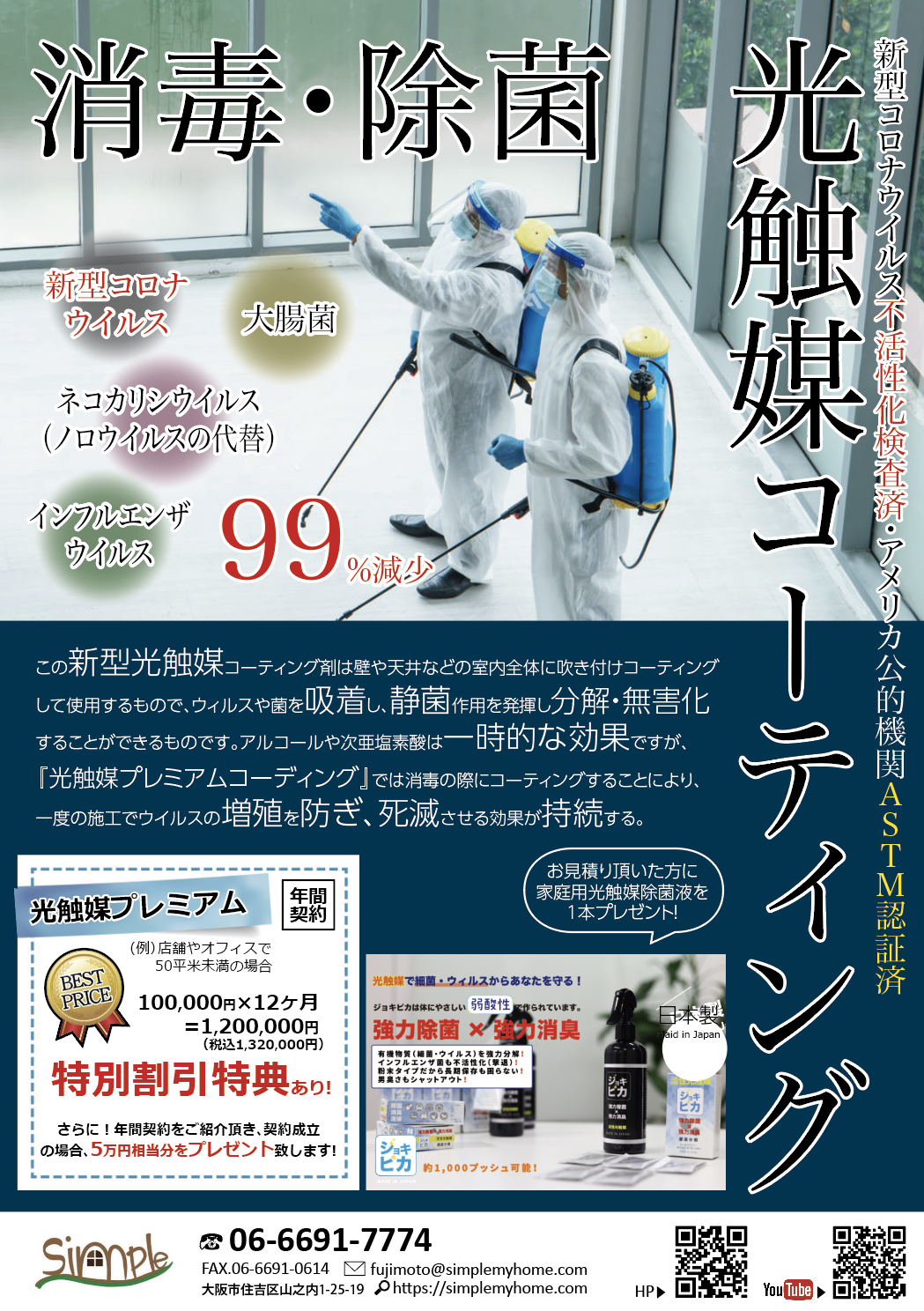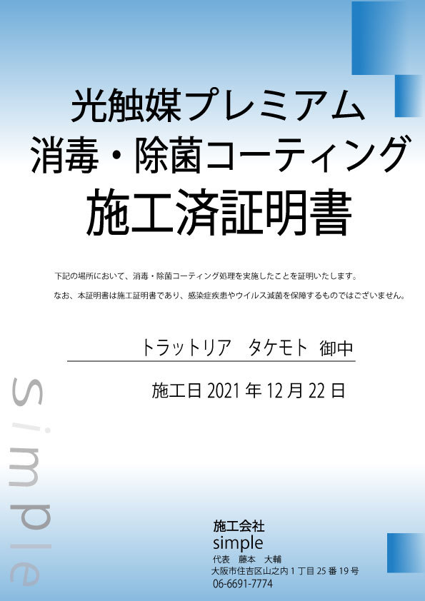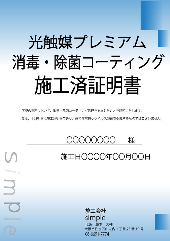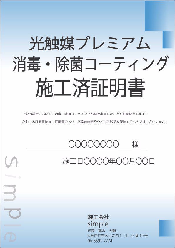 光触媒プレミアム消毒・除菌コーティング